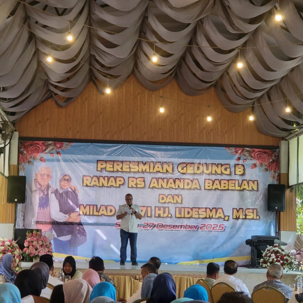 XBerita – RS Ananda Babelan secara resmi menggelar Peresmian dan Serah Terima Gedung Rawat Inap Marali Tarmizi pada Sabtu (27/12/2025). Gedung baru ini dibangun di atas lahan seluas kurang lebih 2.500 meter persegi dengan luas bangunan sekitar 5.000 meter persegi, sebagai bagian dari komitmen RS Ananda Group dalam mendukung peningkatan mutu dan kapasitas layanan kesehatan bagi masyarakat Kabupaten Bekasi dan sekitarnya.